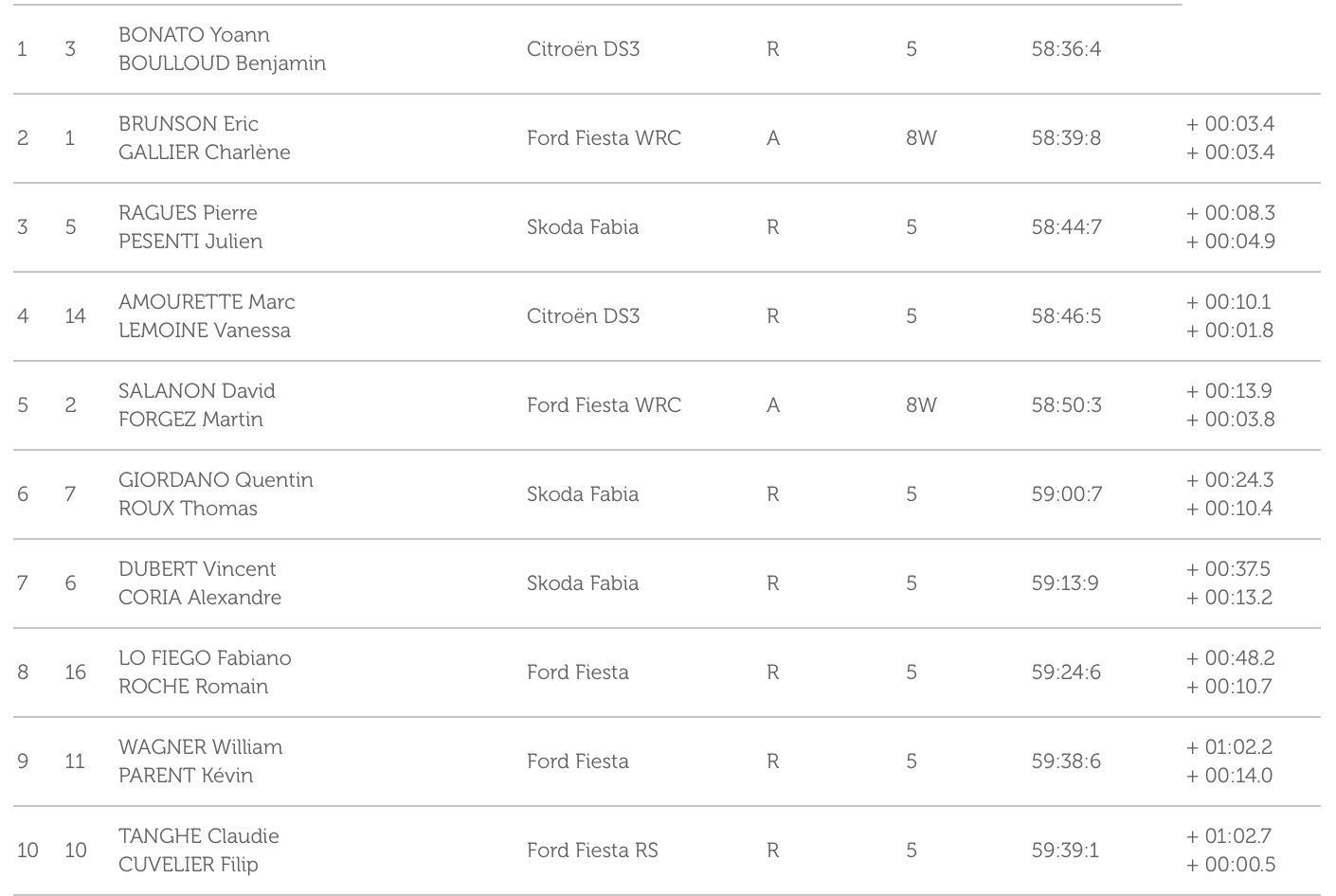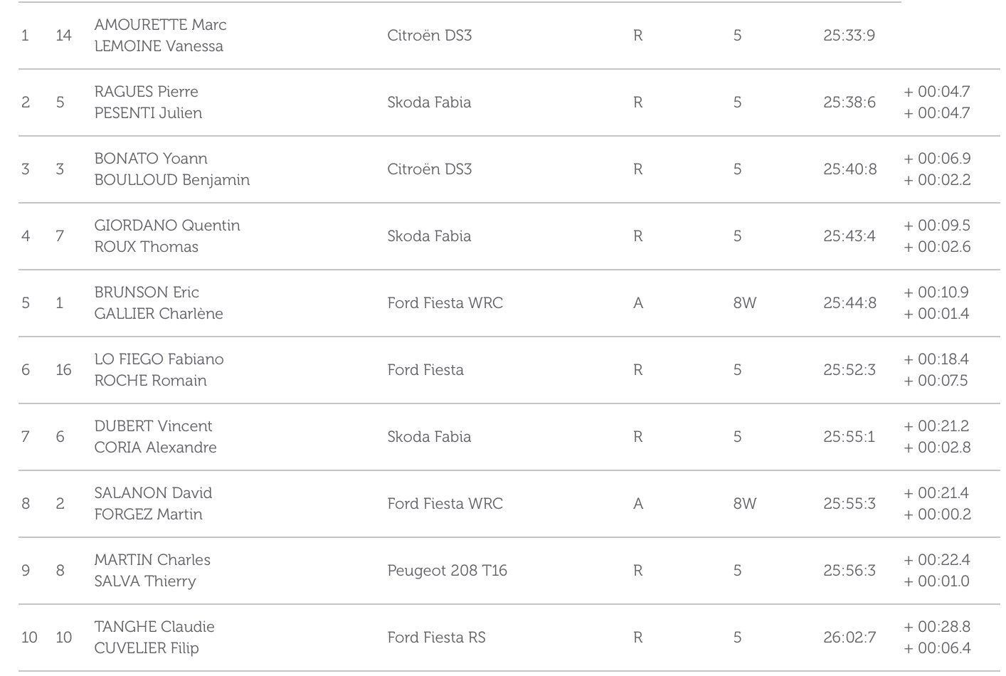 После обеда начался настоящий падеж. Сначала вылетел с трассы и сошел Стефан Лефевр, которому на сервисе поменяли привод. Там же улетел Фрэнк Лионс шедший до этого момента на 4-м месте. На 8-м су из-за механических проблем встает Квентин Жордано (подломился задний правый рычаг). Казалось бы - лидирующую группу итак прорядили как сорняки на грядке, но нет. 9-й СУ становится последним для Эрика Мюфри (техника), а на 10-м и заключительном СУ второго дня падает Давид Саланон, пробивает колесо Роман Дюма и сходит Франсуа Делекур